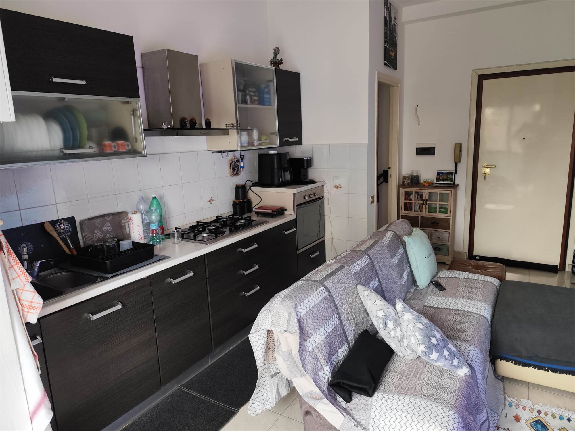 Bilocale completamente arredato, posto al terzo senza ascensore. L'appartamento è composto da soggiorno con cucina a vista, camera, servizio e balcone.