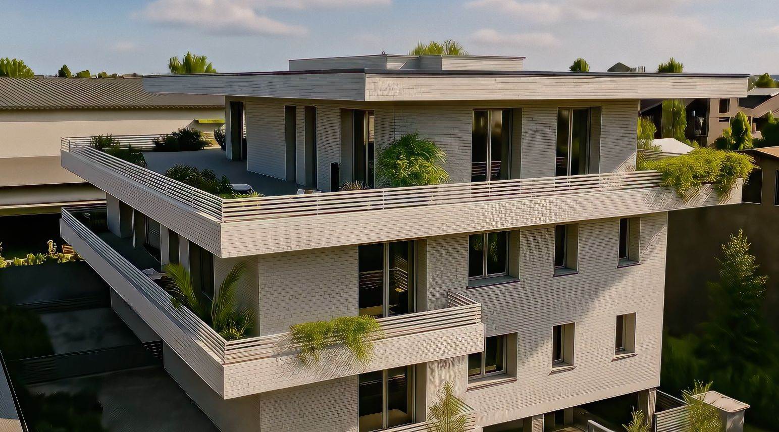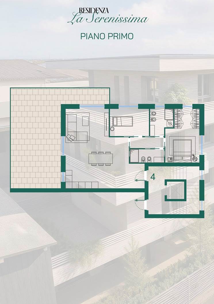 Piani Superiori: unità funzionali valorizzate da terrazzi loggiati di generose dimensioni, concepiti come estensione naturale della zona giorno.